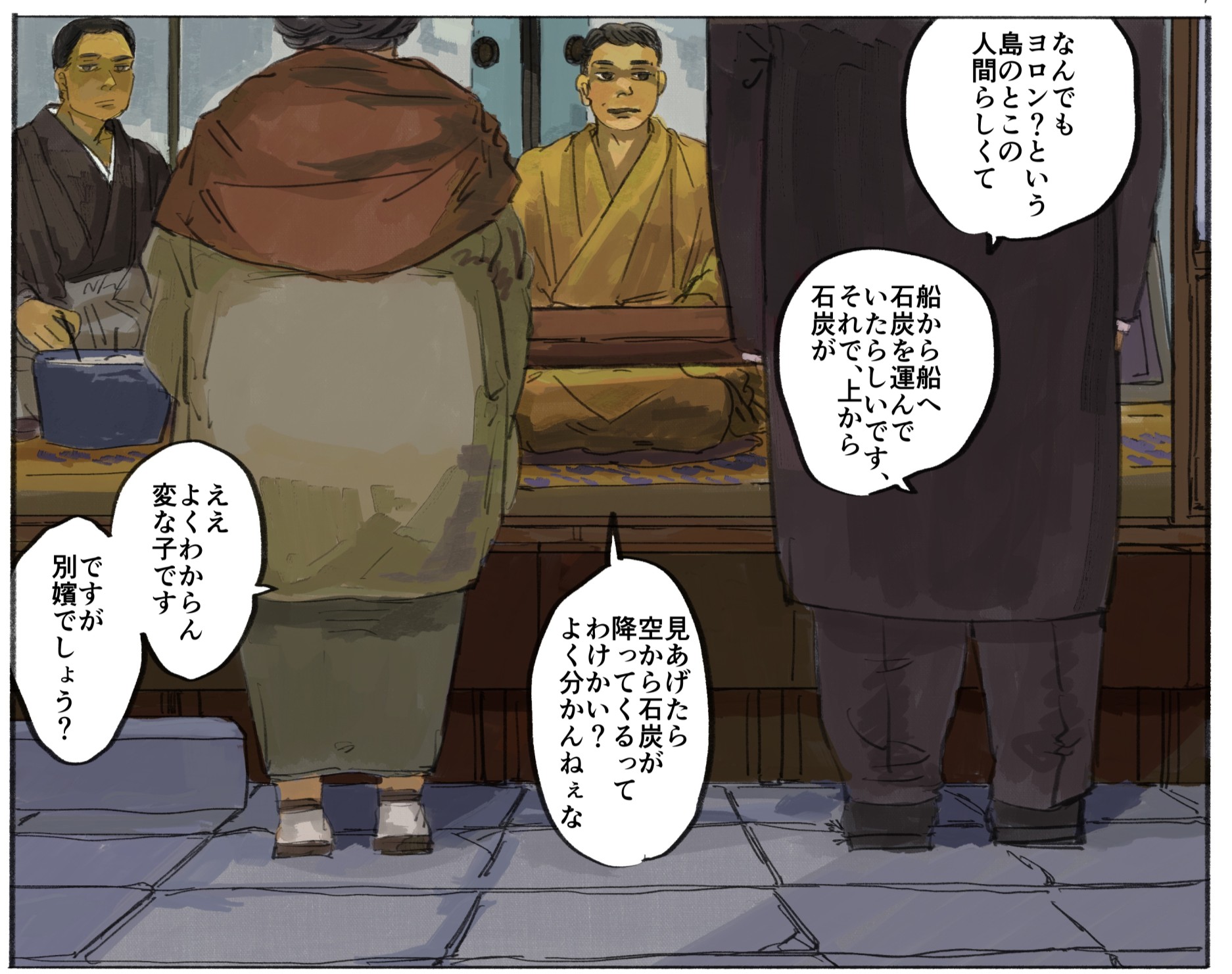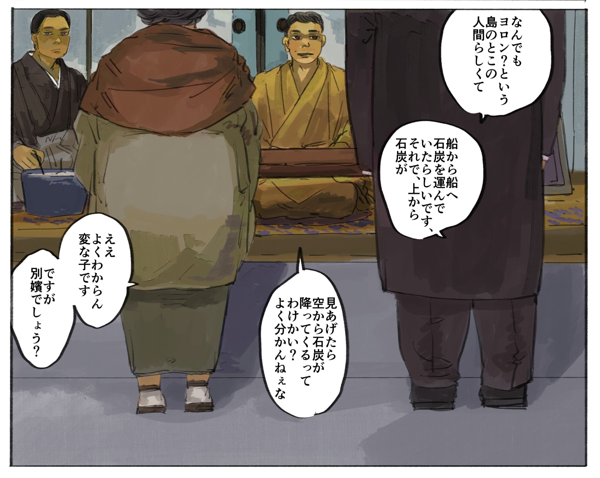 「渺渺録」エピグラフは「七ツ八ツからカンテラ提げて 坑内下がるも親の罰」にしたいんですけど、一つは親=人間の親や先祖や国家、あるいは船にとっての会社・組織、もう一つは子がその系譜にあって、あまりに長く親の親からその体制が続いてきたことで個人一代ではどうにもならなかった時代とその一生を描きたい、という想いで…(ろくろ)
